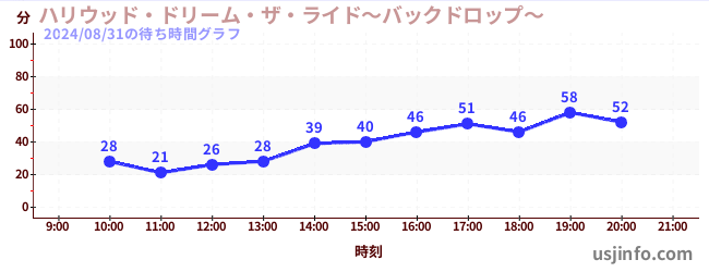 • ハリウッド・ドリーム・ザ・ライド〜バックドロップ〜$B$N(B2024年08月31日の待ち時間