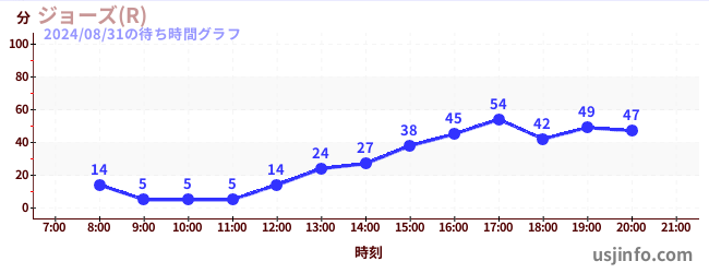 • ジョーズ(R)$B$N(B2024年08月31日の待ち時間