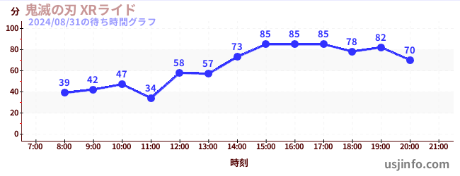 • 鬼滅の刃 XRライド$B$N(B2024年08月31日の待ち時間