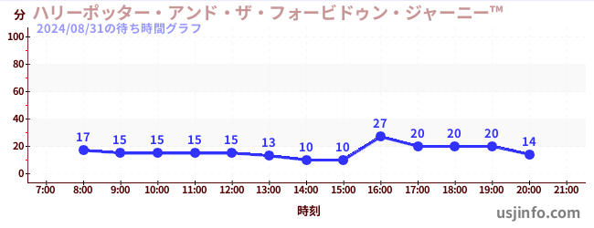 • ハリーポッター・アンド・ザ・フォービドゥン・ジャーニー™$B$N(B2024年08月31日の待ち時間