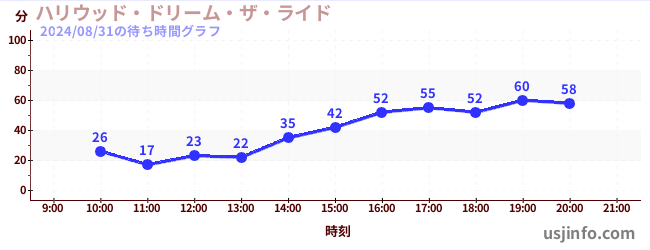 • ハリウッド・ドリーム・ザ・ライド$B$N(B2024年08月31日の待ち時間