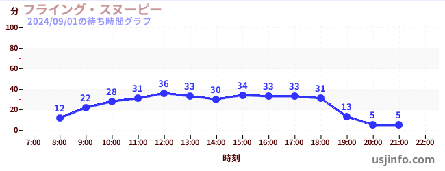• フライング・スヌーピー$B$N(B2024年09月01日の待ち時間