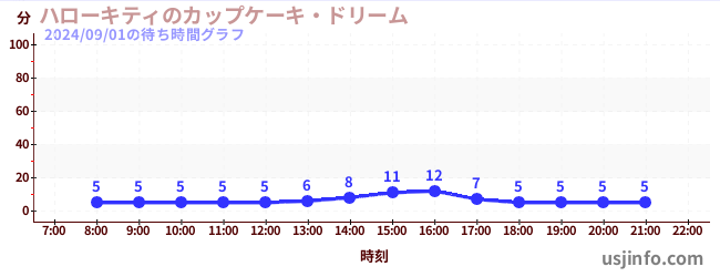 • ハローキティのカップケーキ・ドリーム$B$N(B2024年09月01日の待ち時間