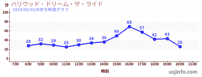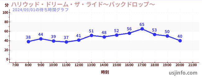 • ハリウッド・ドリーム・ザ・ライド〜バックドロップ〜$B$N(B2024年09月01日の待ち時間
