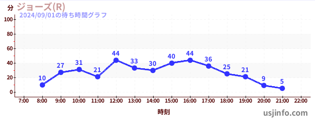 • ジョーズ(R)$B$N(B2024年09月01日の待ち時間