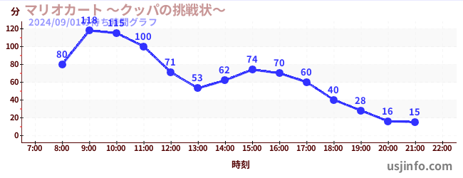 • マリオカート ~クッパの挑戦状~$B$N(B2024年09月01日の待ち時間