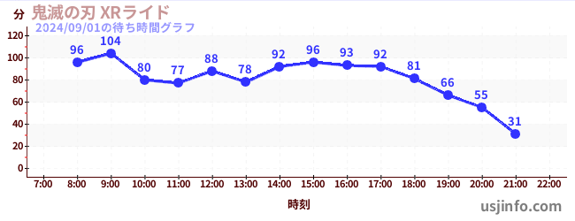 • 鬼滅の刃 XRライド$B$N(B2024年09月01日の待ち時間