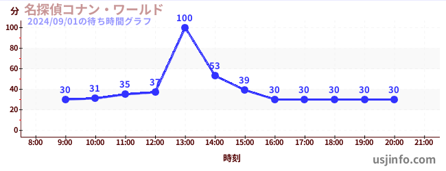 • 名探偵コナン・ワールド$B$N(B2024年09月01日の待ち時間