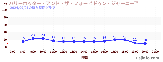• ハリーポッター・アンド・ザ・フォービドゥン・ジャーニー™$B$N(B2024年09月01日の待ち時間