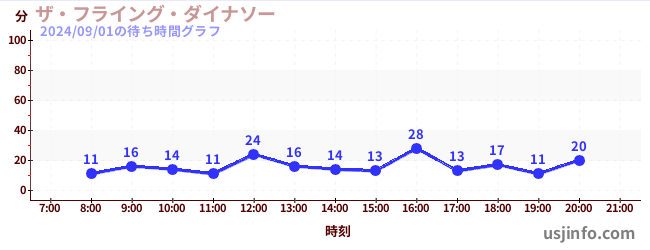 • ザ・フライング・ダイナソー$B$N(B2024年09月01日の待ち時間