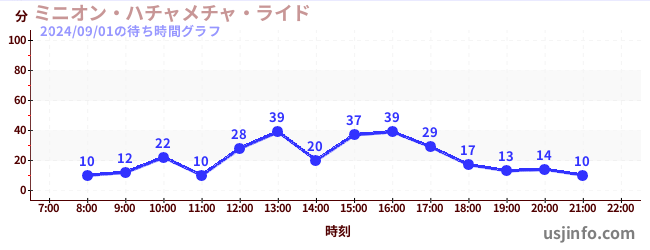 • ミニオン・ハチャメチャ・ライド$B$N(B2024年09月01日の待ち時間