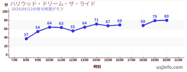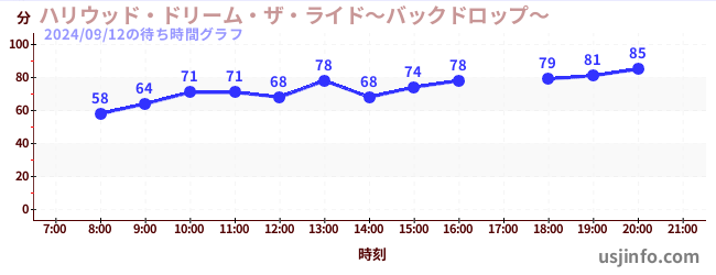 • ハリウッド・ドリーム・ザ・ライド〜バックドロップ〜$B$N(B2024年09月12日の待ち時間