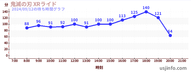 • 鬼滅の刃 XRライド$B$N(B2024年09月12日の待ち時間