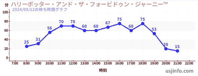 • ハリーポッター・アンド・ザ・フォービドゥン・ジャーニー™$B$N(B2024年09月12日の待ち時間