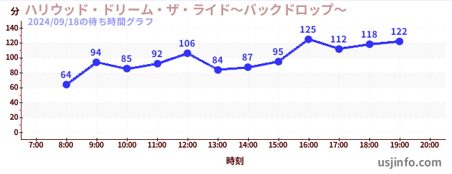 • ハリウッド・ドリーム・ザ・ライド〜バックドロップ〜$B$N(B2024年09月18日の待ち時間