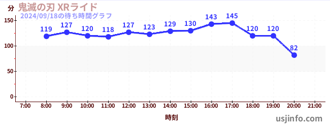 • 鬼滅の刃 XRライド$B$N(B2024年09月18日の待ち時間