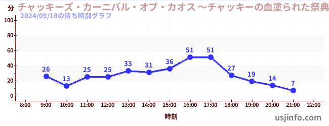 • チャッキーズ・カーニバル・オブ・カオス ~チャッキーの血塗られた祭典~$B$N(B2024年09月18日の待ち時間