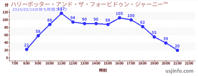 • ハリーポッター・アンド・ザ・フォービドゥン・ジャーニー™$B$N(B2024年09月18日の待ち時間
