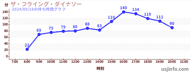 • ザ・フライング・ダイナソー$B$N(B2024年09月18日の待ち時間