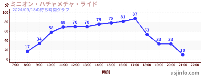 • ミニオン・ハチャメチャ・ライド$B$N(B2024年09月18日の待ち時間