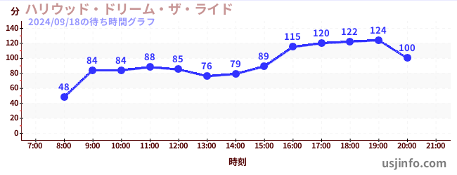 • ハリウッド・ドリーム・ザ・ライド$B$N(B2024年09月18日の待ち時間