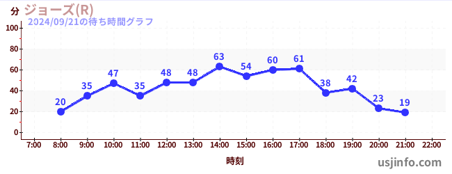 • ジョーズ(R)$B$N(B2024年09月21日の待ち時間