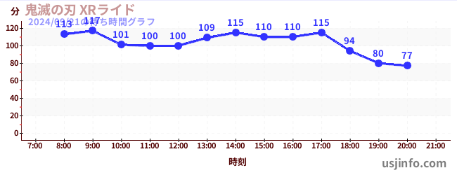 • 鬼滅の刃 XRライド$B$N(B2024年09月21日の待ち時間