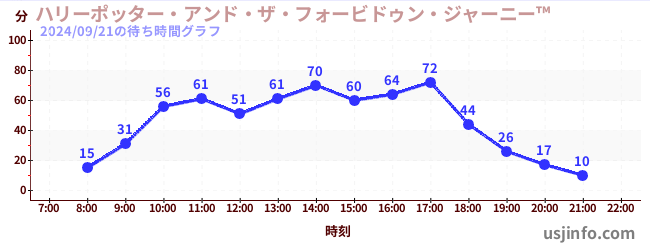 • ハリーポッター・アンド・ザ・フォービドゥン・ジャーニー™$B$N(B2024年09月21日の待ち時間