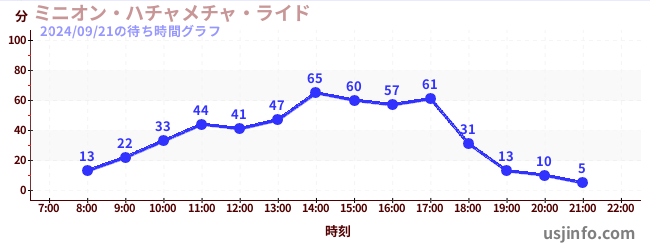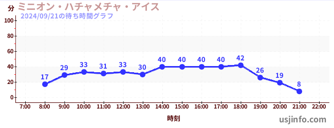 • ミニオン・ハチャメチャ・ライド$B$N(B2024年09月21日の待ち時間