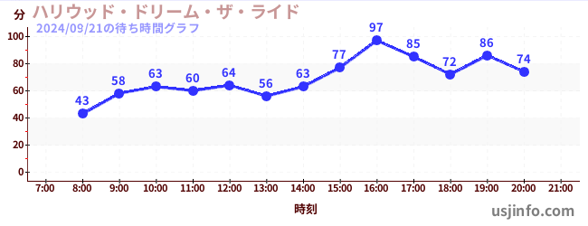 • ハリウッド・ドリーム・ザ・ライド$B$N(B2024年09月21日の待ち時間