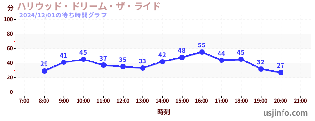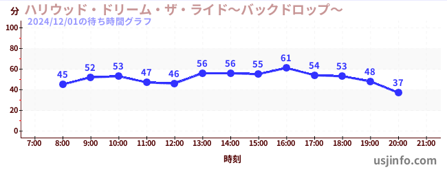 • ハリウッド・ドリーム・ザ・ライド〜バックドロップ〜$B$N(B2024年12月01日の待ち時間