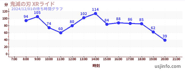 • 鬼滅の刃 XRライド$B$N(B2024年12月01日の待ち時間