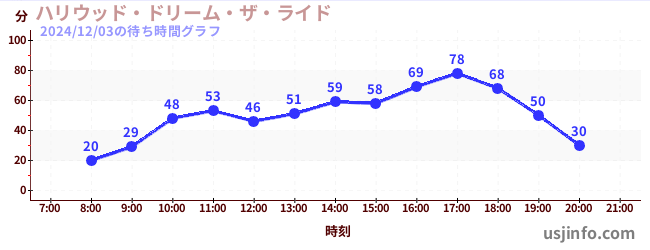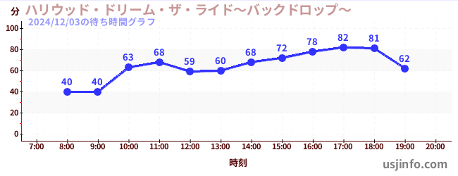 • ハリウッド・ドリーム・ザ・ライド〜バックドロップ〜$B$N(B2024年12月03日の待ち時間