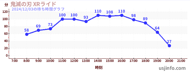 • 鬼滅の刃 XRライド$B$N(B2024年12月03日の待ち時間