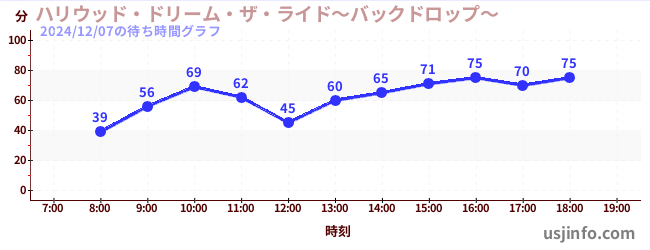 • ハリウッド・ドリーム・ザ・ライド〜バックドロップ〜$B$N(B2024年12月07日の待ち時間