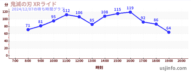 • 鬼滅の刃 XRライド$B$N(B2024年12月07日の待ち時間
