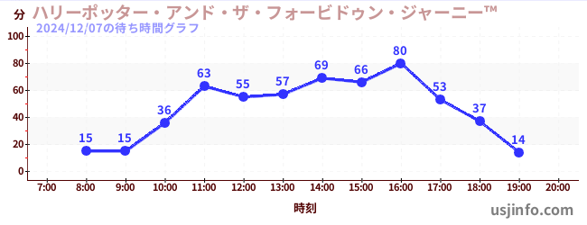 • ハリーポッター・アンド・ザ・フォービドゥン・ジャーニー™$B$N(B2024年12月07日の待ち時間