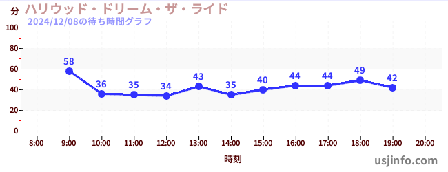• ハリウッド・ドリーム・ザ・ライド〜バックドロップ〜$B$N(B2024年12月08日の待ち時間