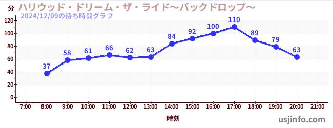 • ハリウッド・ドリーム・ザ・ライド〜バックドロップ〜$B$N(B2024年12月09日の待ち時間