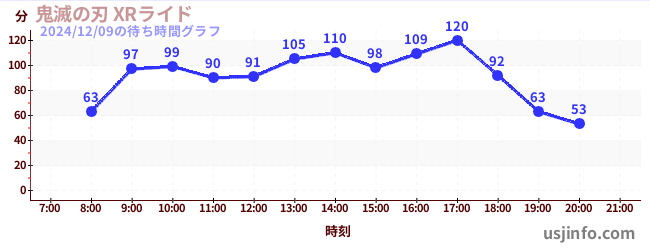 • 鬼滅の刃 XRライド$B$N(B2024年12月09日の待ち時間