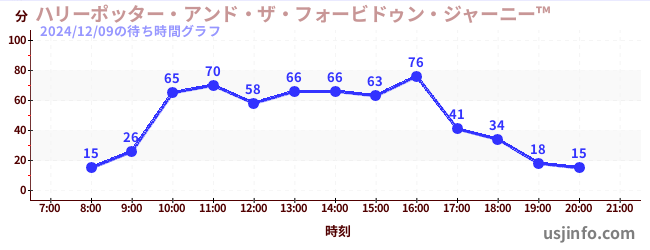 • ハリーポッター・アンド・ザ・フォービドゥン・ジャーニー™$B$N(B2024年12月09日の待ち時間