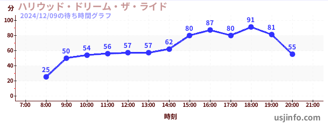 • ハリウッド・ドリーム・ザ・ライド$B$N(B2024年12月09日の待ち時間