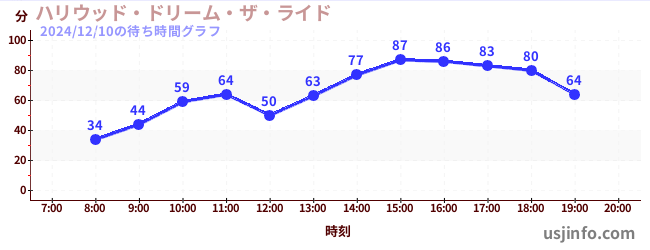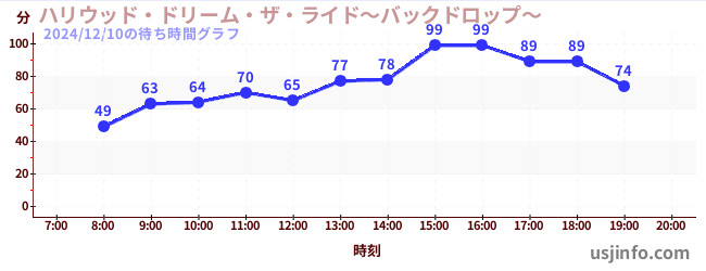 • ハリウッド・ドリーム・ザ・ライド〜バックドロップ〜$B$N(B2024年12月10日の待ち時間