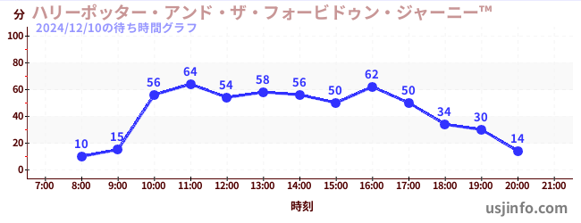 • ハリーポッター・アンド・ザ・フォービドゥン・ジャーニー™$B$N(B2024年12月10日の待ち時間