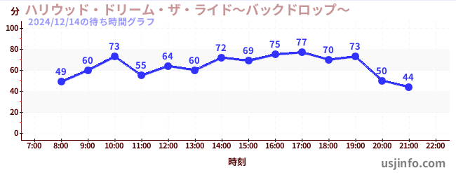 • ハリウッド・ドリーム・ザ・ライド〜バックドロップ〜$B$N(B2024年12月14日の待ち時間