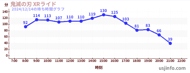 • 鬼滅の刃 XRライド$B$N(B2024年12月14日の待ち時間