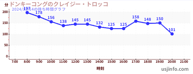 • ドンキーコングのクレイジー・トロッコ$B$N(B2024年12月14日の待ち時間