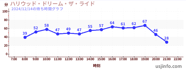 • ハリウッド・ドリーム・ザ・ライド$B$N(B2024年12月14日の待ち時間