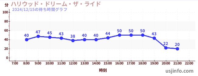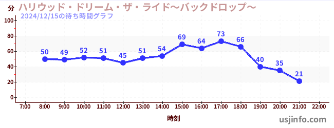 • ハリウッド・ドリーム・ザ・ライド〜バックドロップ〜$B$N(B2024年12月15日の待ち時間