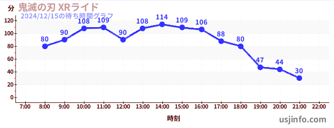 • 鬼滅の刃 XRライド$B$N(B2024年12月15日の待ち時間